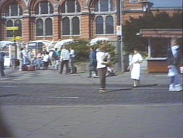 Fuss über den Bahnhofsplatz zur Strassenbahnhaltestelle.