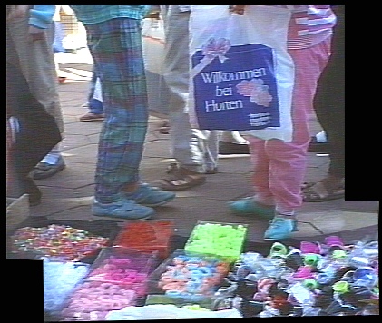 gibt es heute noch. Auf dem Klapptisch wird wohl Schmuck angepriesen.
