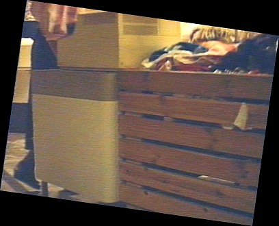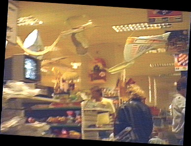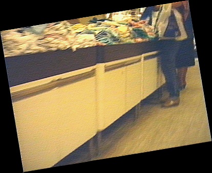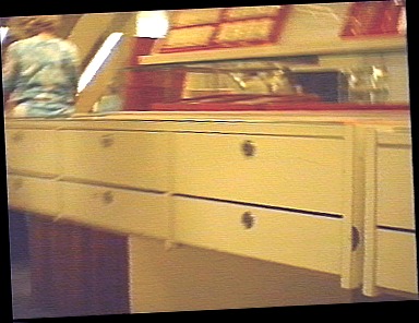 der Kasse, ganz im Kontrast: Typisches 80er-Jahre Holzwerk.