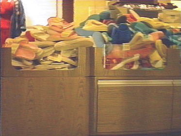 den Kassen: Schubfächer für Tüten und Verpackungsmaterial.
