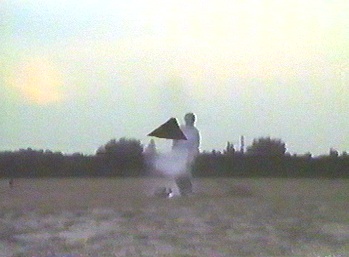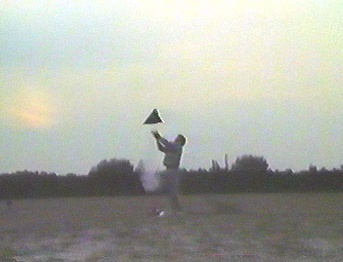 . . Deltawing noch keinen Kiel, so war die Fluglage noch instabil. Mit jenem Kiel, der als weiteres Seitenleitwerk fungierte, war dann alles ok! Der Delta hatte etwa eine Länge von 60cm und wurde per Hand gestartet.