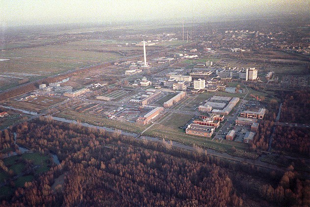 das Umspannwerk. Die Sandfläche in der Bildmitte ist der Stadtwald-Spielplatz