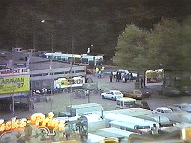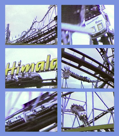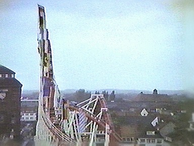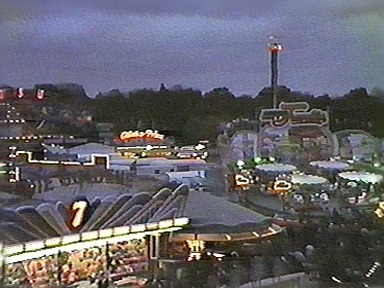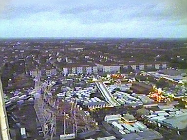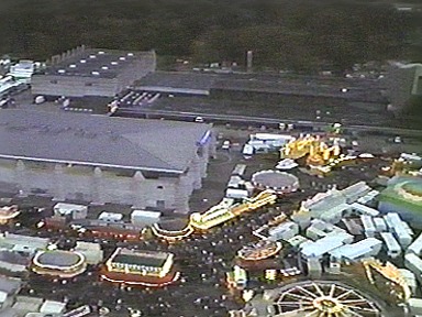 . Die Himalaya-Bahn auf dem 950. Bremer Freimarkt 1985. Dieses ist eine meiner aller ersten Videoaufnahmen. Ich hatte die Kamera gerade neu und probierte so rum. Man verzeihe mir die etwas wackelige Bildführung, aber ich war derzeit erst 12 Jahre alt und diese Aufnahmetechnik, bei der man endlich drehen konnte so viel man wollte ohne dabei teures "Zelluloid" zu verbrauchen, war eben noch ungewohnt und animierte zum relativ unkonzentrierten "einfach so laufen lassen". Der Sucher- und zugleich auch Wiedergabemonitor (noch mit Röhrentechnik) zeigte übrigens nur in schwarz-weiss an. Die Bildqualität dieses Materials ist, auch nach 24 Jahren, noch ausgesprochen gut! Es handelt sich hier um eine der wenigen Originalaufnahmen, die ich aus der Zeit noch habe. Also das Tape ist die original VHS-C-30min-Aufnahmekassette. Das allermeiste (auch VHS-Tramfahrten) sind leider nur noch Kopien von den kleinen Aufnahmekassetten auf die langen, und damit seinerzeit deutlich preiswerteren, 4-Std-Tapes. Nach der Achterbahn noch von weiter weg: Der Fliegende Teppich, Condor, Riesenrad und Eislaufhalle. |