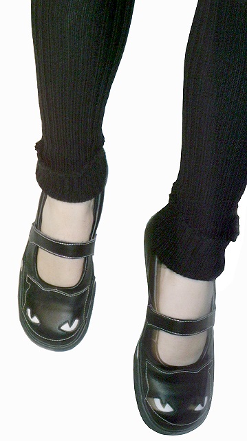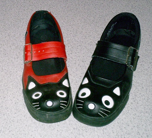 aus 2006. Die Schnalle ist nicht verstellbar, ist aber auch nicht nötig. Guter Sitz. Ebenfalls sehr bequem und Vollgummi. Trotzdem luftig. Ebenso pflegeleicht. Auf dem Schulweg goss es mal wie aus Kübeln - mir und den Schuhen machte das nix. Angekommen liessen sie sich von innen wie von aussen einfach ausschütten, abschütteln und abwischen = so gut wie 100% trocken. Wie bei Crocs oder Gummistiefeln. An jenem Tag fiel der Unterricht dann allerdings aus, weil fast alle, die überhaupt noch ankamen, von oben bis unten voll durch waren... Im ganzen sehen die Cats zu Strumpfhosen und/oder Stulpen etwas fashiger aus, als zu Bluejeans, geht aber dennoch alles gut zu kombinieren. ^.^ |