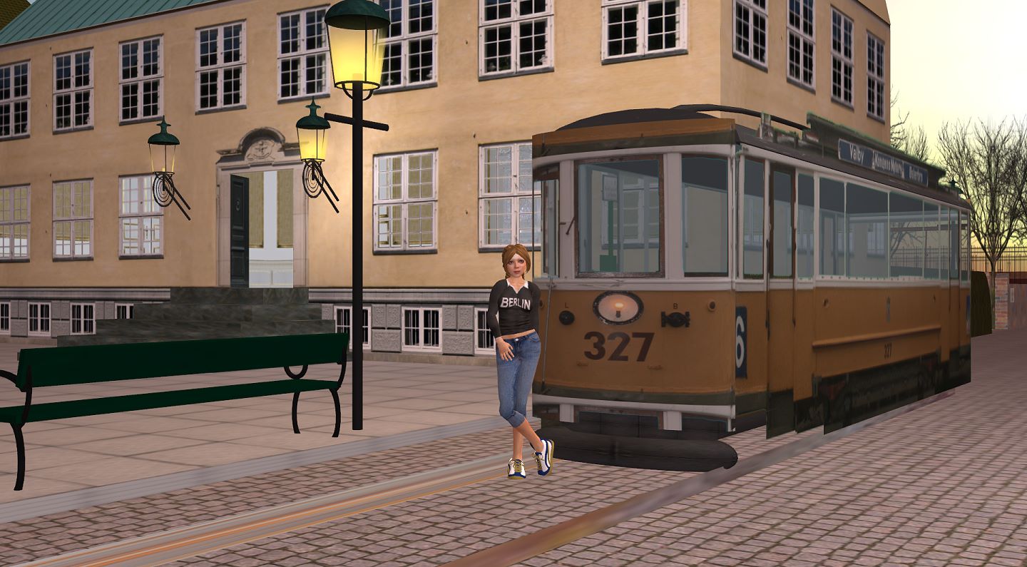 | Denmark-Tram . Fragt mich nicht, warum ich in Dänemark ein Berlin-Shirt anziehe. Aber kommt doch gut, weil plakativ, oder? Diese Klamotten habe ich allerdings nicht im Film an, denn die Filmaufnahmen sind im Winter entstanden - und da lag noch Schnee, hier ist er schon weggetaut. Klamotten im Film = siehe nächstes Bild. Da sich die Arbeit am Video der Überland-Strassenbahnstrecke immer noch hinzieht, wollte ich zwischendurch "schnell mal was anderes" machen. Naja, mit "schnell mal" war's dann aber auch nix... ;) Während jener Zeit sind die Tulpen auf dem Fensterbrett hochgewachsen, sind aufgegangen und wieder verblüht, einige Male flog am klaren Abendhimmel die Raumstation vorbei, zum Schluss inklusive der von ihr abgelegten und daher von der Station schon etwas entfernten Discovery, etliche Kitkats habe ich verspeist, viele Flaschen Cola geleert, das Übliche eben... . . 1920 x 1080 . Dies ist mein erster HD-Film mit 1920x1080 Pixel-Auflösung, der auch die Ressourcen meines neuen 6-Kern-Rechners ausnutzt (d.h. die Programme nutzen den Sechser zwar auch nicht voll aus, aber mit weniger Leistung auf älteren Systemen wäre das Rendern mit diesen Programmen zeitlich nicht mehr praktikabel gewesen). Das ist für jemanden wie mich, der, um Filme machen zu können, im Jahre 1978 als technische Möglichkeit nur lediglich den Textseitenrand von Buchseiten alter abgelegter Bücher für ein paar Sekunden gezeichnete Strichmännchen-Animationen zur Verfügung hatte, heute schon ganz gut... *freu** :) Selbst die Broadcast-Technik, die ich dann Mitte der 90er hatte, ist nichts gegen diese Bildschärfe heute!! Das damalige, matschige Flimmern auf den Röhrenfernsehern war ja fast noch gar kein richtiges Bild. Zumindest war es kein klares, scharfes Bild. . . Bewegtes Gemälde . Dieser Film ist natürlich kein Action-Thriller - er ist, sozusagen, ein bewegtes Gemälde. Wie ein Ölbild eben, oder eine Wandposter-Grafik, dazu mit leichten Animationen darin. Durch das heutige HD und mittels ~1,20m Bildschirmen oder Beamer ist so ein - nenne ich es ruhig mal "Kunstwerk" - gross, scharf und flimmerfrei und damit angenehm zu betrachten. Mich faszinierten auf der IFA Ölbilder alter Meister, dargestellt auf Bildschirmen mit kleinen Animationen von z.B. Wasserrosen-Seeflächen mit leichten Windkräuselungen und wandernden Wolken in der Wasserspiegellung. Diesen Charakter hat auch dieser Film. . . Wagen 327 im Original .. Dieser Nachbau des Wagens und der Strecke ist wohl eine Reminiszenz an die Kopenhagener Strassenbahn (Stillegung des Betriebes im Jahr 1972). Der Wagen 327 steht und fährt heute noch im Original im Dänemarker Strassenbahnmuseum Skjoldenæsholm. Ein Bildlink hier. Ursprünglich stammt der Wagen also aus Kopenhagen und das Seitenschild beschreibt hier eine Strecke, beginnend etwas westlich vom Zentrum Kopenhagens (Valby) durchs Zentrum (Kogens-Nytorv) und dann in die nördliche Richtung raus (Osterbro). |